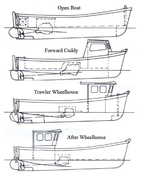 There are wheelhouse options taking the form of the Trawler styled wheelhouse with its integral fore deck and full depth bulkhead, and its separate roof moulding.